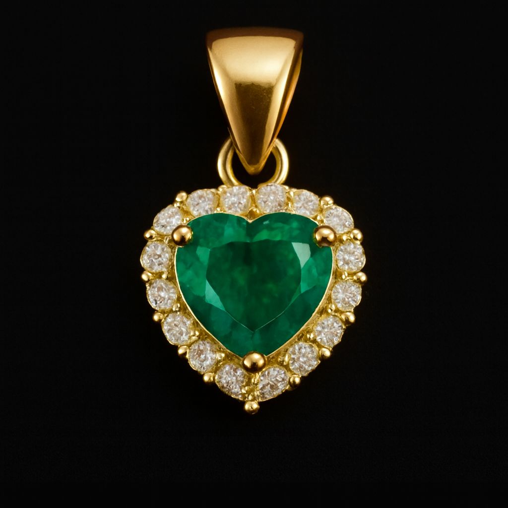 -Grado AAA : Joya dije con esmeralda colombiana corazón 10 mm color intenso cristal y pureza con diamantes en oro amarillo 18 kilates certificada.
