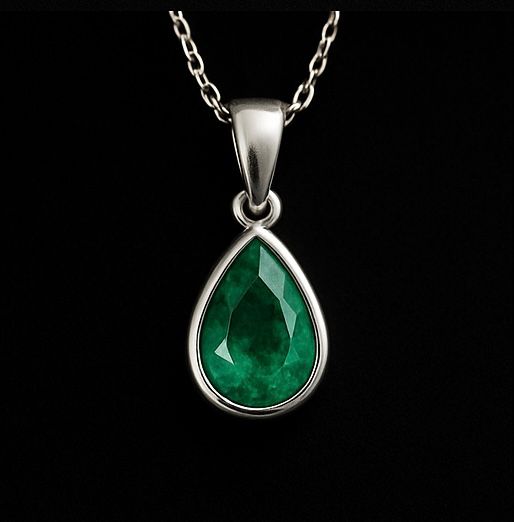 -Grado B: Joya dije con esmeralda colombiana forma gota o lagrima 7mm cristal con tono en plata certificada.