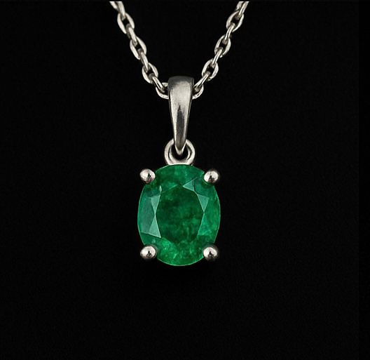 -Grado AAA : Joya dije con esmeralda colombiana ovalada 10 mm color intenso cristal y pureza en oro blanco 18 kilates certificada.