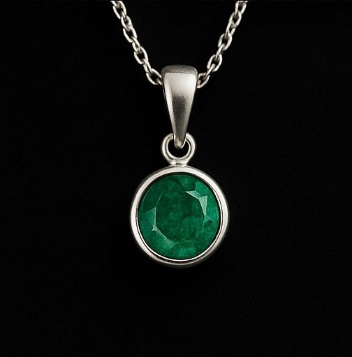 -Grado A: Joya dije con esmeralda colombiana redonda 7mm color intenso en plata certificada.