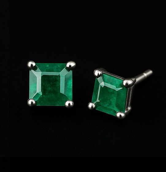 -Grado A: Joya topos con esmeralda colombiana cuadrada 5mm x 5mm color intenso en plata certificada.